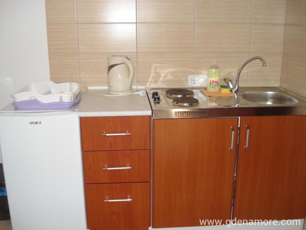 Piano terra - superficie 10 m2, 1/2 (max. 2 persone), un letto (90 cm) e un divano letto, mini cucina - (frigorifero, mini fornello con forno), guardaroba, bagno, ventilatore, radio, internet wireless , terrazza.