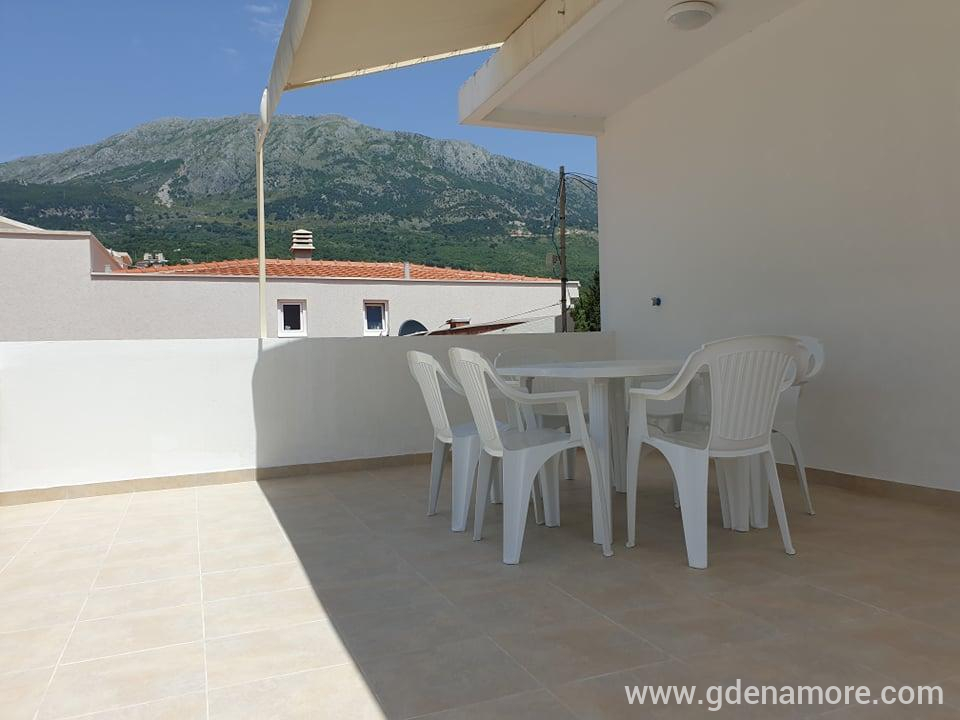 Il quinto appartamento si trova al secondo piano ed è composto da cucina, bagno, camera da letto, soggiorno con sala da pranzo. L'appartamento è climatizzato, dotato di connessione Wi-Fi e TV LCD. La terrazza ha una superficie di 25 m².